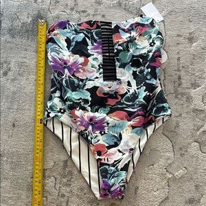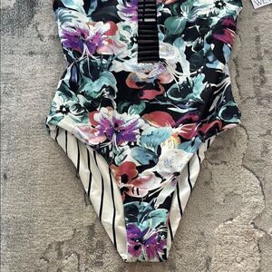 Dive into elegance with this sleek one-piece swimsuit, featuring a sophisticated blend of black and purple hues. Designed for comfort and style, it's perfect for both poolside lounging and active swimming sessions. Reversible.