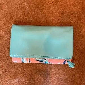 Tropical print reversible clutch. Internal pocket.