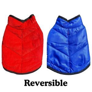 Warm, reversible, dog coat with hook & loop closures. Great condition.