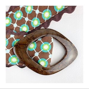 Unbranded Reversible Fabric Belt Trimmed with Grosgrain Ribbon and Marbled Plastic Diamond Shaped Buckle Sz M