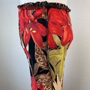 Super cute stretch fit reversible skirt in excellent preowned condition. It measures 13 inches at the waist laying flat and 38 inches in length.