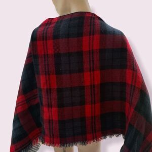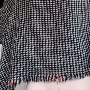 Festive red plaid on one side, black and white houndstooth pattern on the other