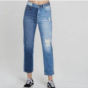 Revice Denim Sz 29 Two Tone Contrast Jeans Hi-Rise Distressed Pocket Straight Leg