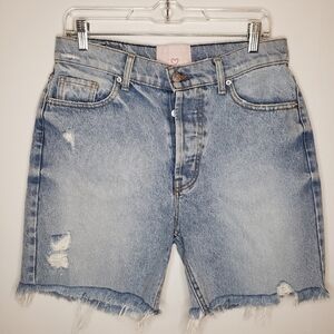Revice Denim Distressed Raw Hem High Rise Denim Shorts Size 30
