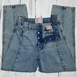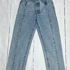 Revice Gemini Fit Jeans. 24.5” inseam, high waisted rise, light indigo wash, 100% cotton. This style has a fitted waist and a wedgie fit to create the best vintage fit.