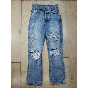 Revice High Rise Distress Denim Jeans Size 25 Holes Rips Fold Over Waist CUTE
