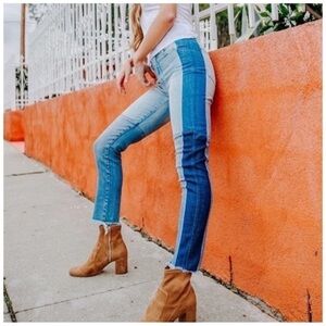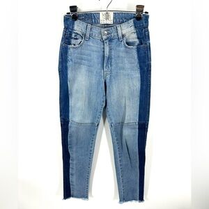 Revice Jeans Sz 27 Imagine Patchwork Two Tone Denim Raw Hem Ankle Stretch Cotton