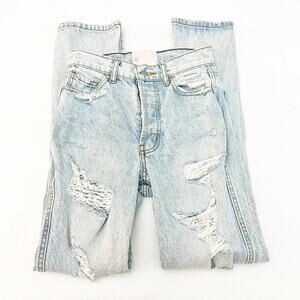 Revice Light Wash Button Fly Ripped Denim Jeans Straight Leg Size 24