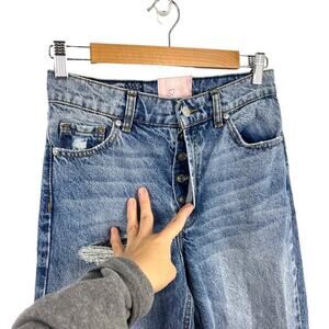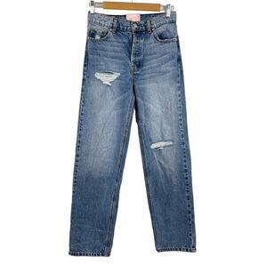Revice Super 80s High Rise Button Fly Distressed Straight Leg Rigid Jeans Size 25