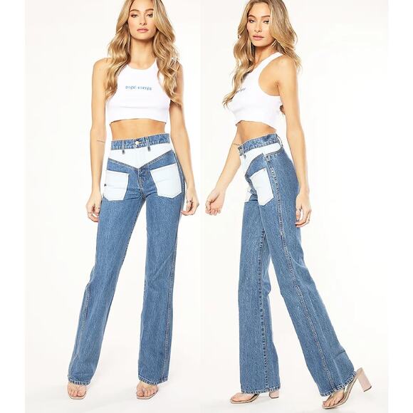 Revice The Muse Jeans Size 23 Goddess High Rise Colorblock Pocket Cotton Flared