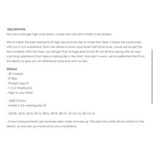 Revice V Waist Follow My Lead Straight Leg Jeans- Size 27