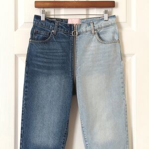 Revice Yin Yang Two Tone Wash High Waisted Slim Fit Ankle Cropped Jeans
