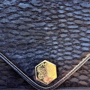 Revillon Vintage Black Alligator Print Handbag with Gold Chain
