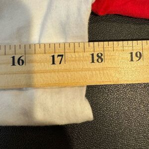 Classic Raglan Style: White body with contrasting red 3/4 length raglan sleeves for a sporty, comfortable look.