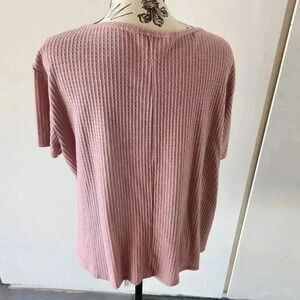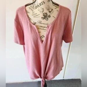 This dusty pink textured front tie shirt is so cute! Looks great with jeans or shorts.