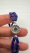 The stones are stunning lapis lazuli. Should fit a 7.5" wrist size according to my sizer.