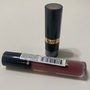 Elegant Revlon lipstick and gloss in black tubes. Ideal for vibrant lips.
