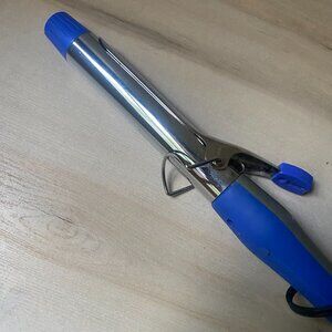 Revlon Blue Silver 1" barrel curling iron tested working easy 1 setting RVC029AF