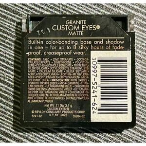 The Revlon Custom Eyes EyeShadow LOT includes three vintage shades - Granite, Lavender, and RanchMink. These single units are powder formulations with a matte finish, offering long-lasting wear. Each unit contains 0.11 oz/3.1 g of product and is part of the Revlon Custom Eyes product line, made in the United States. Perfect for adding a pop of color to your eyeshadow look, these assorted shades are ideal for creating unique eye makeup styles.