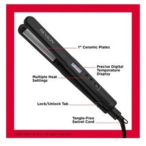Revlon Perfect Heat 1" Ceramic Digital Flat Iron, Black- NIB