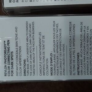 Revlon color correcting pens. number 030 instantly conceals dark spots and color imperfections. Number 010 conceals blemishes and redness. Never opend.