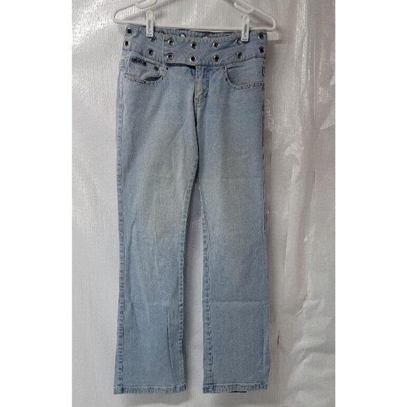 Revolt Jeans Womens 7/8 Mid Rise Bootcut Light Blue Denim - Punk Detail