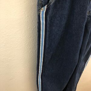 Revolt classic denim bin overalls blue strip lines on side size M. Pre-owned. Great condition