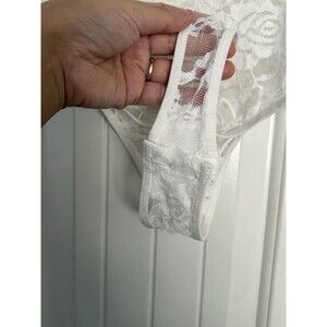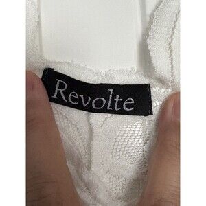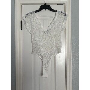 Revolte Lace Bodysuit Large White Sheer Short Sleeve V-Neck Scalloped Hem Date