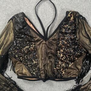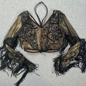 Revolution 10th House Dance Costume Top Size MA TH25247 Black Gold Sequin Fringe