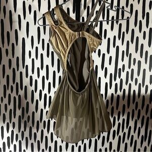 Stylish dance dress in tan and cream. Perfect for performances.