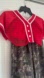 • Red fishnet cropped jersey with white trim and attached faux buttons