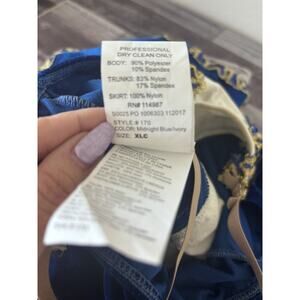 Brand: Revolution Dancewear. Style 170. Color: Midnight Blue/Ivory. Size: Extra Large Child (XLC).