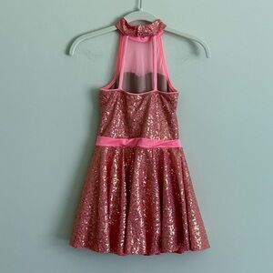 Revolution Dancewear Coral Sequin Halter Dress Costume w/ Shorts Size MC