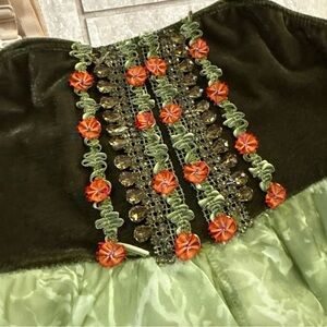 Top is a beautiful dark green velvet and the skirt is a very flowy chiffon