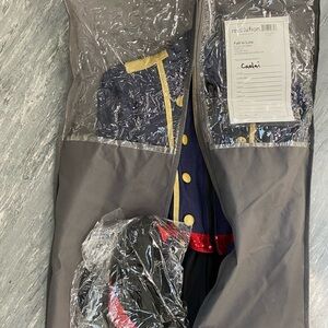 New in bag dance costume by Revolution (style RC20968). Name written on bag. Includes painter's cap style hat.