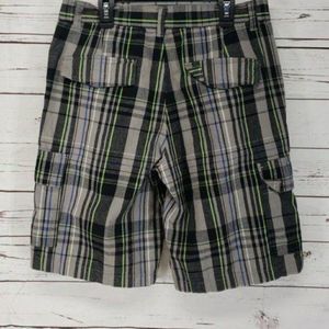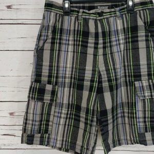 Revolution Men’s Black Green Gray plaid shorts. Size 32.