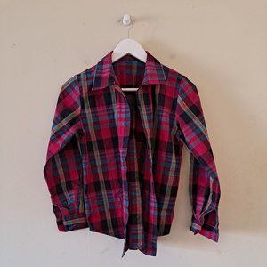 Revolution Multicolored Plaid Collared Open Front Long Sleeve Jacket - S