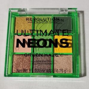 Dynamic eyeshadow palette with striking green and shimmering gold shades. Perfect for bold eye looks.