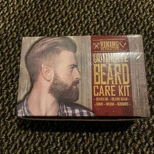 Elevate your grooming routine with the Revolution Ultimate Beard Care Kit. This comprehensive set includes beard oil, balm, comb, brush, and scissors, all designed to keep your beard looking its best. The kit's brown packaging reflects its rugged and classic style.
