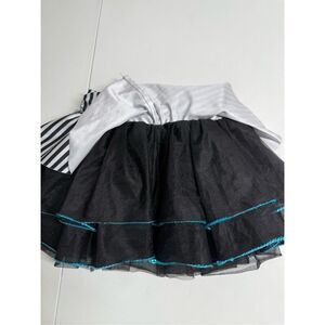 Revolution Girls Stripped Sequined Dance Skort Size SC White Black Blue Trim