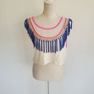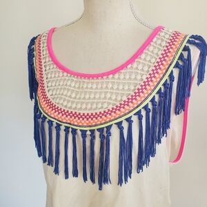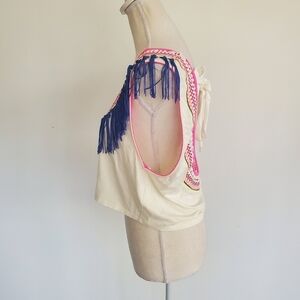 Revolve | 6 Shore Road brightly colored tassel fringe embroidered crop top with open back and tie.