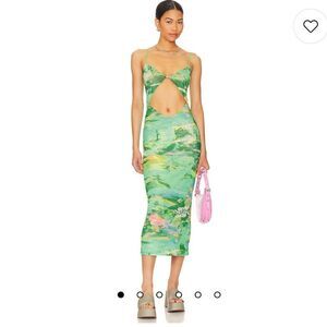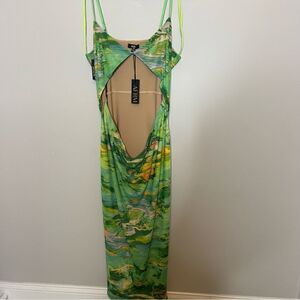 Revolve AFRM Keefa Midi Dress in Acid Green Marble NWT Size 1X