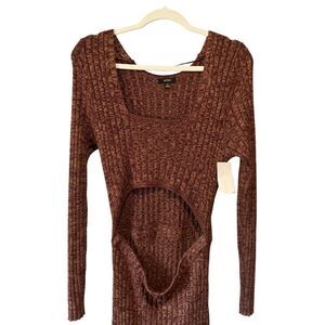 A front cutout shows a peek of skin when you slip on this ribbed knit midi dress.