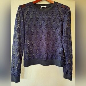 Revolve ALC Womens Navy Lace Floral Long Sleeve Semi Sheer Top Size 6