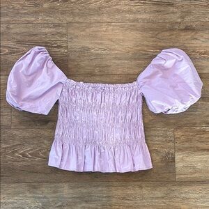 ASTR The Label Savina Smocked Purple Blouse with Puff Sleeves