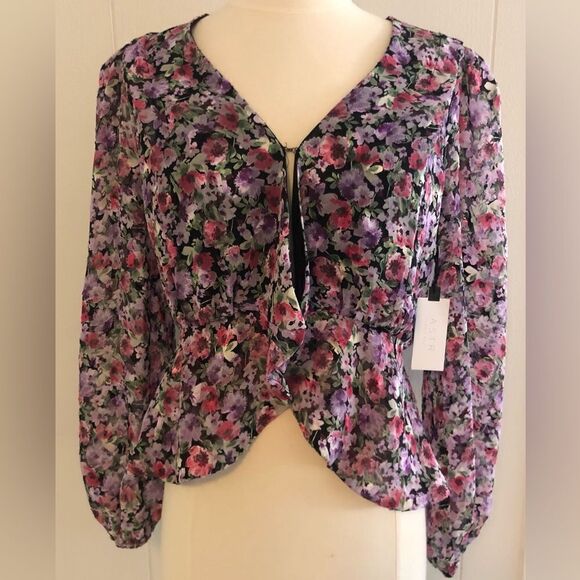 Revolve ASTR the Label Floral Keyhole V-Neck Peplum Top Size Small