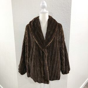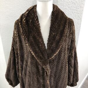 Adrienne Landau Brown Faux Fur Shawl Collar Coat