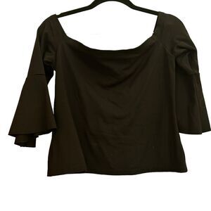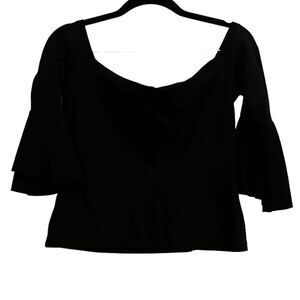 Revolve Alexis Black OFF The Shoulder Bell Sleeve Stretch Cropped Top Medium