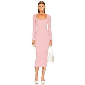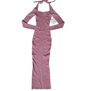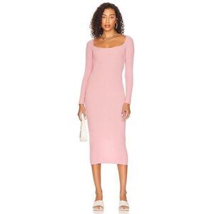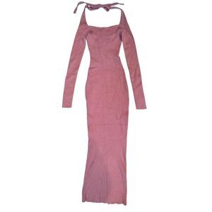 Sold out on Revolve. Elegant pink maxi sweater dress. Scoop neckline. Small snag on front as pictured. Price reflects condition. Still has tags on it.