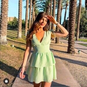 Revolve Amanda Uprichard Westerly Gingham Checked Dress Hypermint Green Large